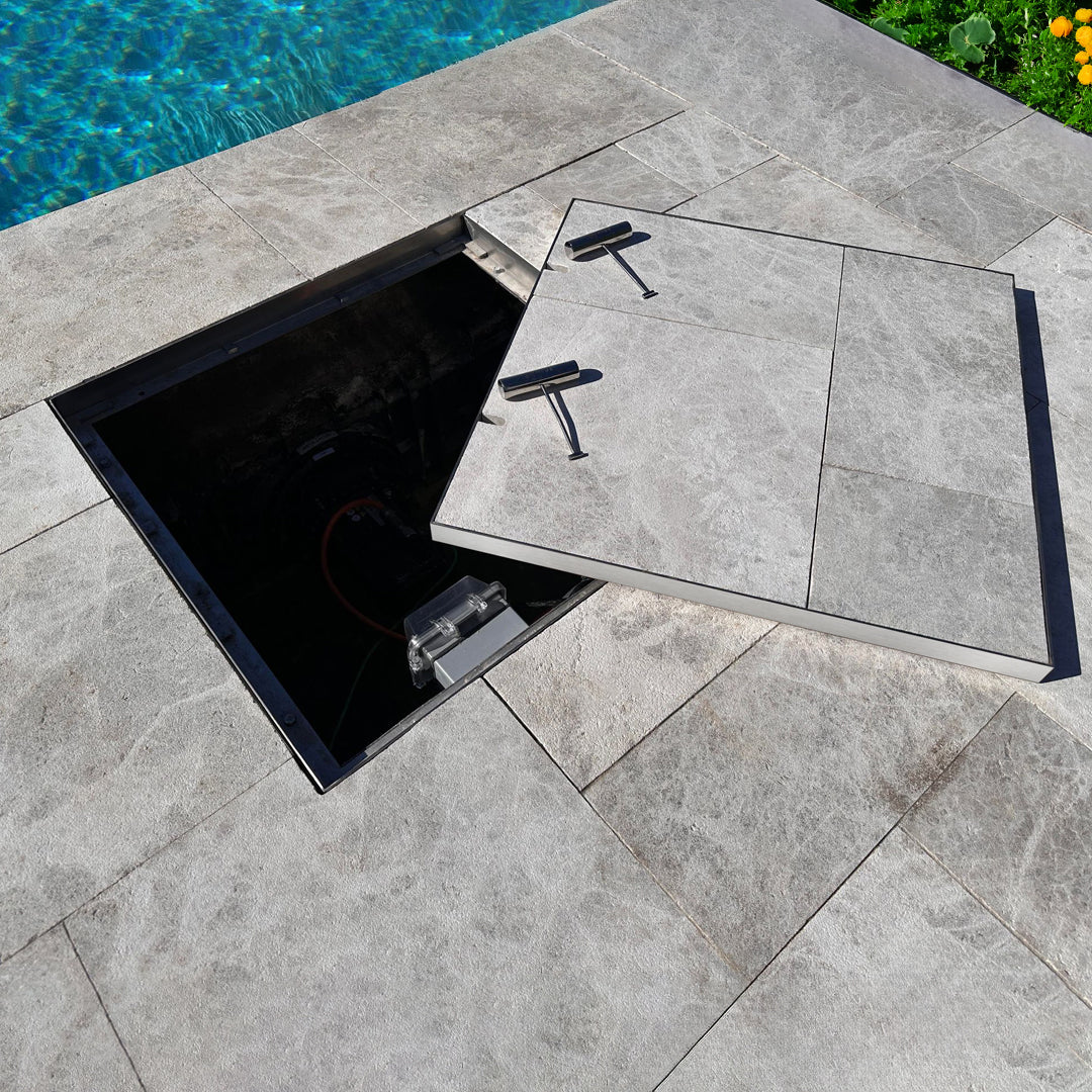 HIDE Manhole Covers, an essential upgrade for your outdoor spaces. These covers are designed for easy removal, facilitating swift inspection and maintenance while blending flawlessly with your pool and patio surrounds. 10-Year Warranty. Made In Australia.